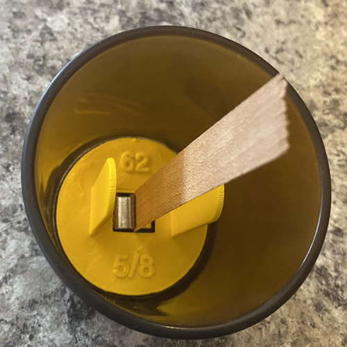 Our Wooden Wick Placer consists of a disk sized for your vessel with an opening in the base for the wooden wick clip and two 2-1/4 inch handles to retrieve the placer from your vessel. Please specify the diameter of the inside of the bottom of your vessel. Please specify the height of your vessel. Please specify the diameter of your wick clips. Please specify the shape of your wick clips. Pricing: Wooden Wick Placer $10 Currently all of our tools are for round vessels. Square and rectangular to come... For Magnetic Wick Placers & Single Sized Wick Holders